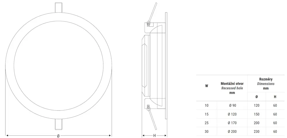 Vestavná instalace do sádrokartonu s homogenním rozptylem světla.