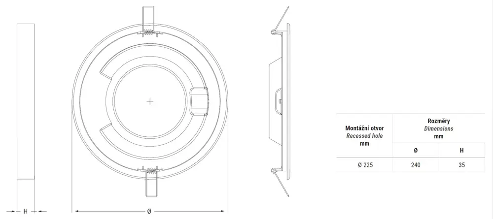 Svítidlo je vhodné pro všechny typy aplikace, díky inovativní nastavitelné upevňovací konzole pro montáž do sádrokartonu lze instalovat do stávajících otvorů od 65 do 310 mm.