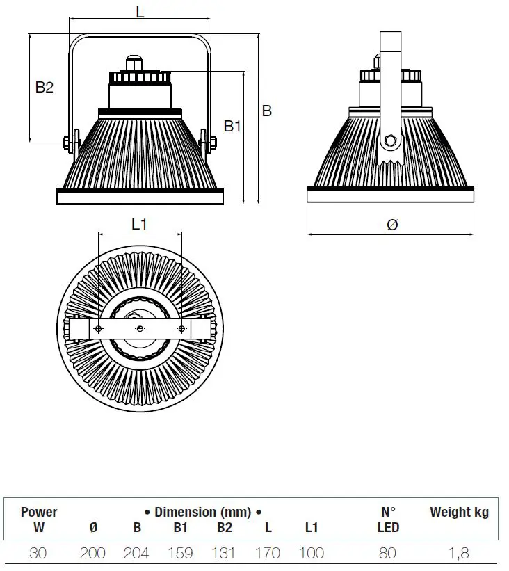 LED světlomet s tělem, které je tvořeno hliníkovým pod tlakem lisovaným odlitkem a zadním šroubovacím krytem z polymeru pro rychlý přístup do kabelového prostoru. Stupeň ochrany je udržován vysoko díky silikonovému těsnění. Kyselinou leptané tvrzené sklo zabraňuje oslnění.