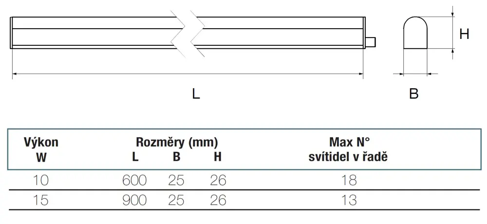 Použití vysoce výkonných LED zaručuje velmi nízkou celkovou spotřebu. Dostupné ve dvou různých velikostech; svítidlo je vybaveno integrovanou průchozí kabeláži pro souvislou instalaci do řady.