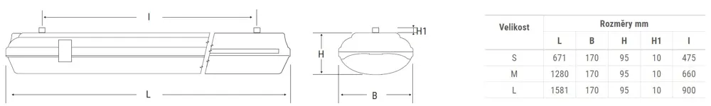 Svítidlo má krytí IP65. Stupeň ochrany proti mechanickému poškození: IK05.