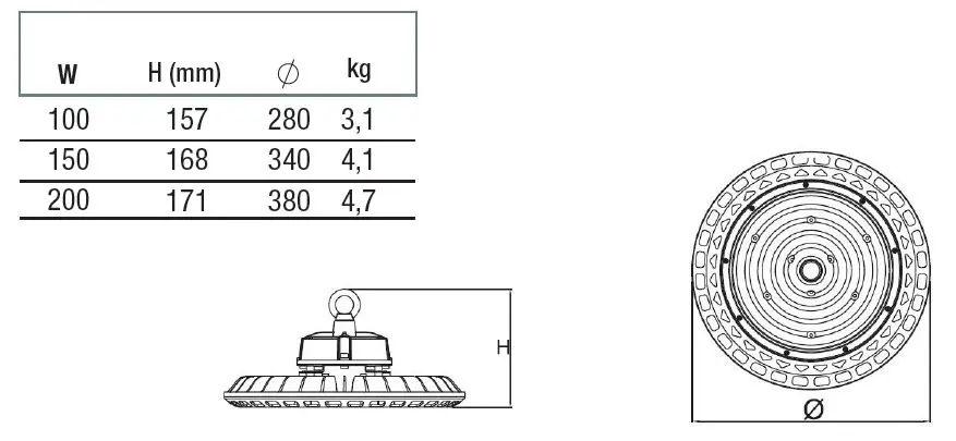 Nová generace průmyslového svítidla s LED s vysokou účinností. Výrazně odlehčené těleso umožňuje snadnější instalaci. Materiál tělesa je tlakový odlitek z hliníku s chlazením, svítidlo tak má vždy optimální účinnost a správnou pracovní teplotu. Difuzér je vyroben z polykarbonátu.