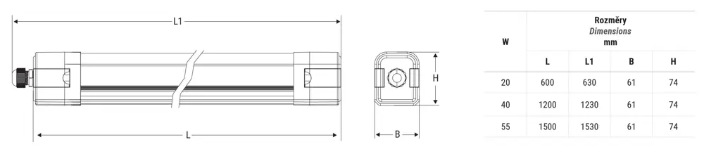 Svítidlo se stupněm krytí IP65 a stupněm ochrany proti mechanickému poškození IK08.