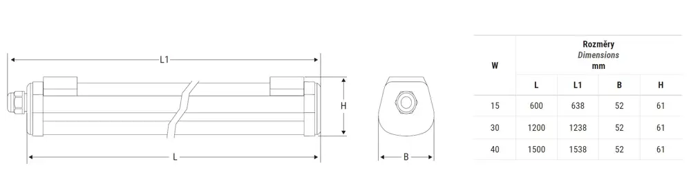 Svítidlo se stupněm krytí IP65 a stupněm ochrany proti mechanickému poškození IK05.