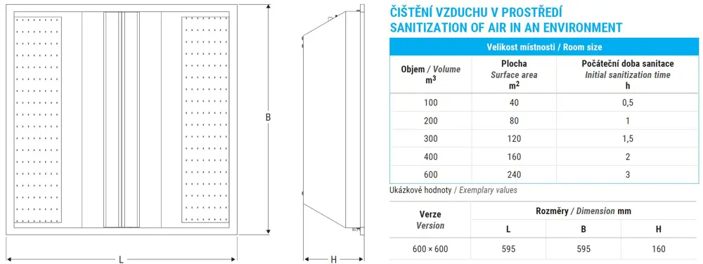 Hybridní svítidlo s vestavěnou UV-C čističkou vzduchu uvOxy®. Nastavení parametrů přes aplikaci B.connect a NuBe cloud. HCL verze s nastavením teploty chromatičnosti (K) ve fixním (CCT) nebo automatickém režimu.