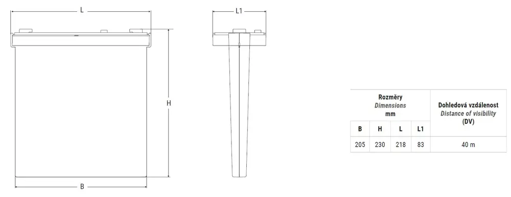 IP65 vlajkové svítidlo s dohledovou vzdáleností 40 m.