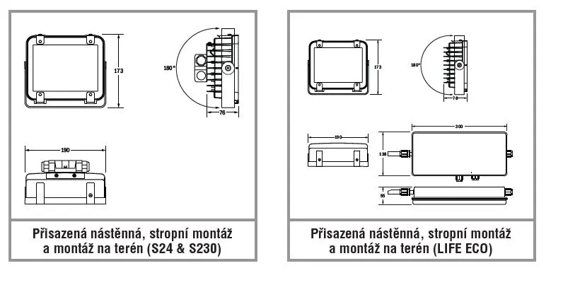 Dostupné jsou verze pro nástěnnou montáž a montáž na terén. Dostupné také pouze jako svítidlo pro všeobecné osvětlení.