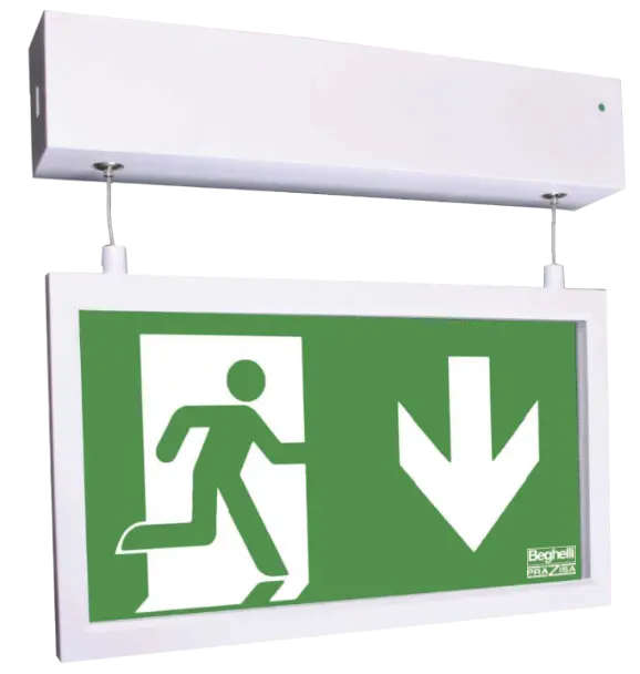 Orientační svítidlo obdélníkového tvaru, rámečkem a světlovodným panelem. Jedno- nebo oboustranné vyměnitelné piktogramy.