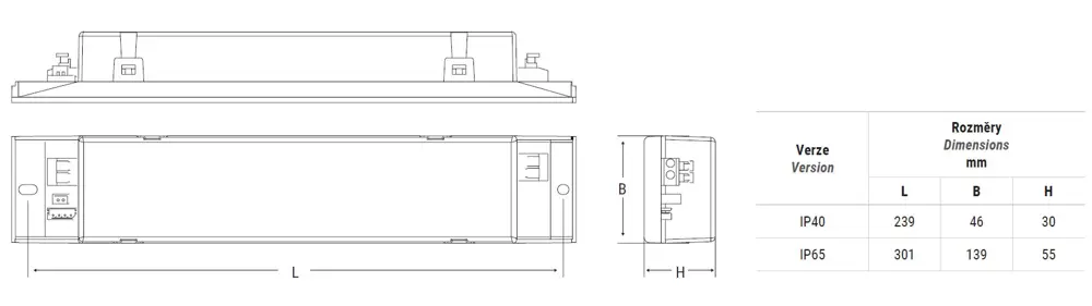 Stupeň krytí IP40, IP65 a IK08.