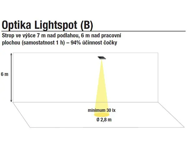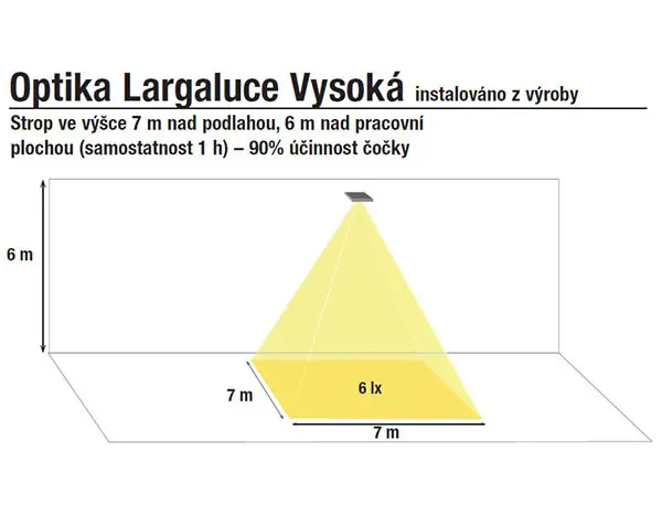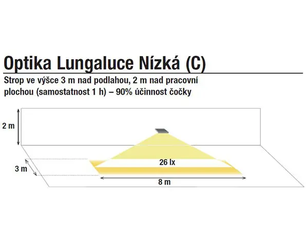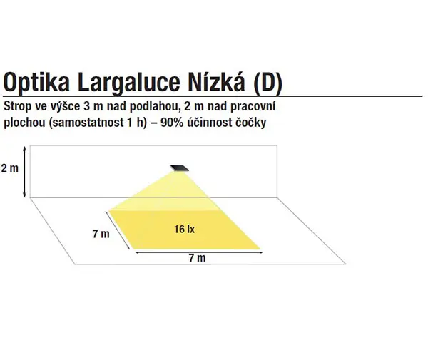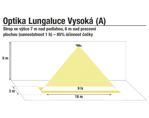 Samostatné svítidlo pro osvětlení velkých prostor, únikových cest a hal ve výšce 2 až 7 m.