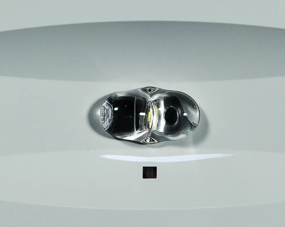 Dvě čočky dodávané se svítidlem. Volitelná asymetrická čočka pro osvětlení požárního a ochranného vybavení.