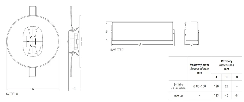 Velmi rychlá montáž díky ocelovým pružinkám, které umožňují manipulaci se svítidlem i po instalaci. Vestavný otvor Ø 80–100 mm.