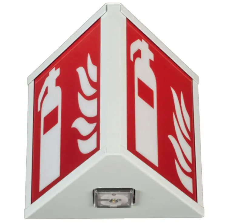 Osvětlení požárně bezpečnostních zařízení s 5 lx pomocí vysoce výkonné LED diody se speciálními čočkami.