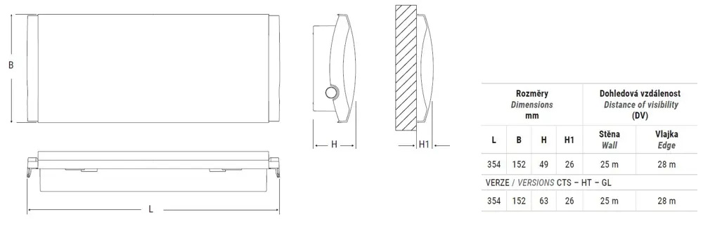 Nastavitelná autonomie a možnost dodatkové baterie pro zdvojnásobení světelného toku (baterie Autoripara). Stupeň krytí IP65 a IK07.