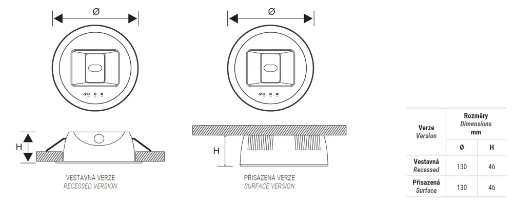 Nouzové svítidlo typu downlight pro vestavnou a přisazenou montáž.
