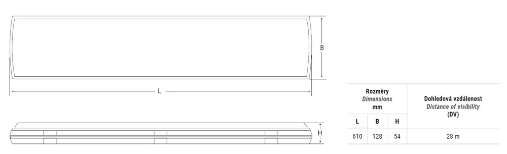 Dostupné se stupněm ochrany IP42 i IP65 a IK07; dohledová vzdálenost 28 m s nainstalovanými piktogramy.