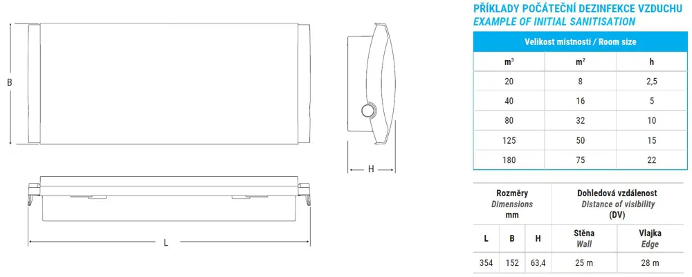 Hybridní nouzové svítidlo s vestavěnou UV-C čističkou vzduchu uvOxy®. Časovače ve 3 krocích: 8, 12, 24 h/den při třech rychlostech čištění. Nastavení parametrů skrze aplikaci B.connect. Nastavitelná autonomie u AT verze. Vysoký světelný tok až 1 200 lm.