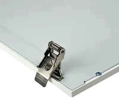 Gehäuse als Rahmen aus Aluminium mit integriertem Light-Guide-Panel aus opalem Kunststoff, mikroprismatisch. Homogene Lichtverteilung, tief-breitstrahlend. Extrem flaches Design in quadratischer Form. Lineares LED-Modul und elektronischer LED-Treiber als SmartDriver, dimmbar von 1% bis 100%, mit integrierten Ports für optionale Module zur dezentralen oder zentralen Dimmung, Steuerung und Überwachung.
