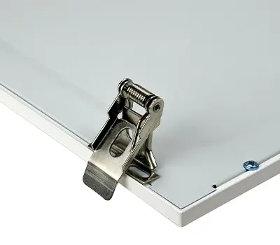 Gehäuse als Rahmen aus Aluminium mit integriertem Light-Guide-Panel aus opalem Kunststoff, mikroprismatisch. Homogene Lichtverteilung, tief-breitstrahlend. Extrem flaches Design in quadratischer Form. Lineares LED-Modul und elektronischer LED-Treiber als SmartDriver, dimmbar von 1% bis 100%, mit integrierten Ports für optionale Module zur dezentralen oder zentralen Dimmung, Steuerung und Überwachung.