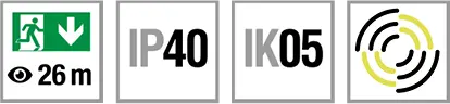 | Inbetriebnahme: | Für Autotest sind Betriebsdauer, Betriebsart PS, Überwachungsgruppe und Testdauer nur per App B.connect über Smartphone lokal an Leuchte programmierbar. |
