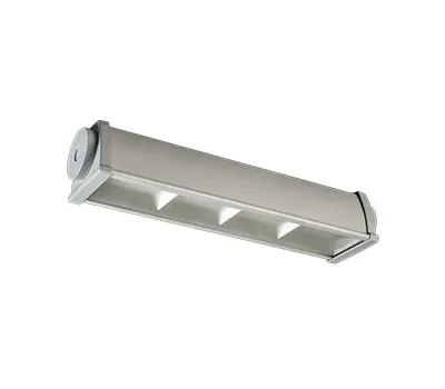 Hohe Schutzart und hohe Schlagfestigkeit. Gehäuse aus verzinktem Stahlblech, Kappen aus Kunststoff, Scheibe aus Hartglas. Kappen und Scheibe fest mit dem Gehäuse verbunden. Lichtlenkung durch hochglänzenden Aluminium-Reflektor. 1- oder 2-seitige Rettungswegkennzeichnung durch wechselbare Displayscheiben. Explosionsgeschützt für Zone 2 (II 3G Ex nA IIB T4) und Zone 22 (II 3D Ex tD A22 T100). Extrem beständig gegen mechanische und chemische Beanspruchung.