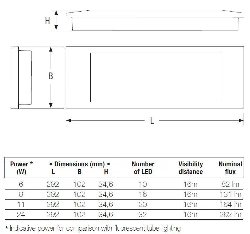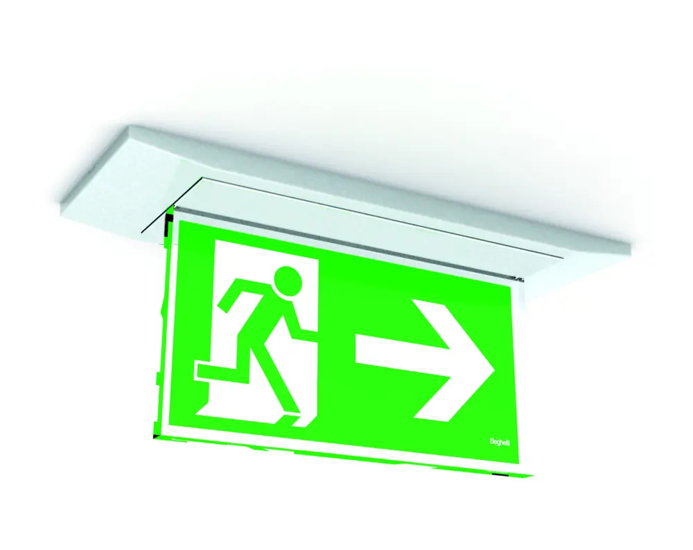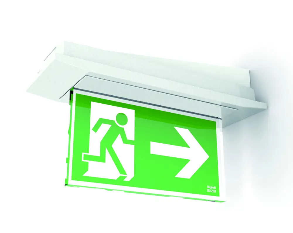 The AESTETICA LED is composed of 2 optics in order to spread light in the best way. This system ensures a perfect light beam uniformity guaranteeing an excellent environment illuminance level. One of the biggest problems regarding the LED illumination is due to the high level of dazzle. For this reason, the optic system reduces the light beam direct component reflecting it to the optics, in order to balance the emergency illumination requirements with the high efficiency and power LEDs.