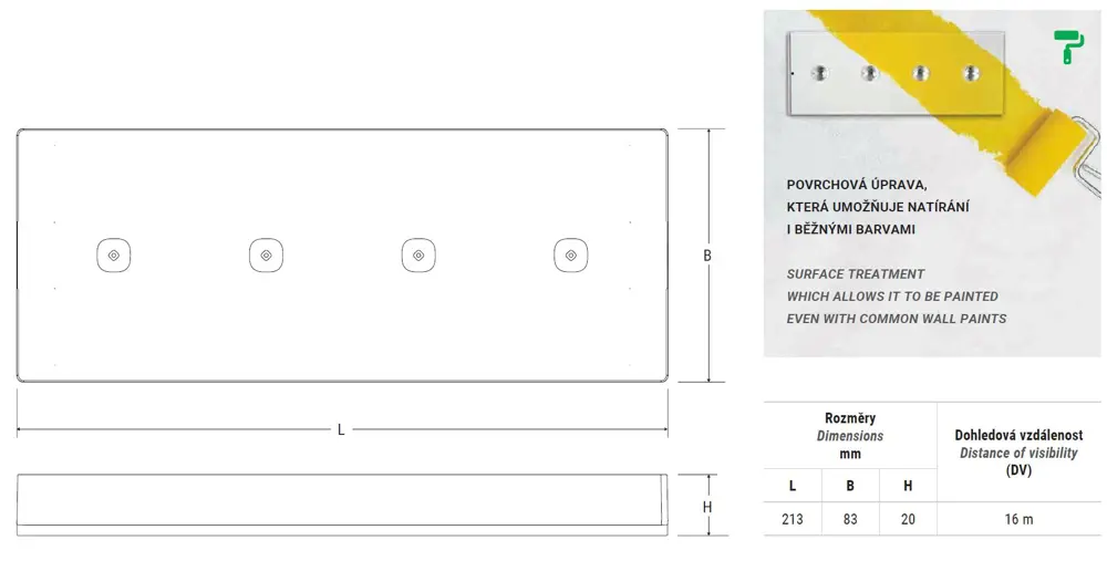 Monolithic screen made of shaped methacrylate, designed specifically to optimise light diffusion and to accommodate the pictogram, where required, with an excellent level of light uniformity.