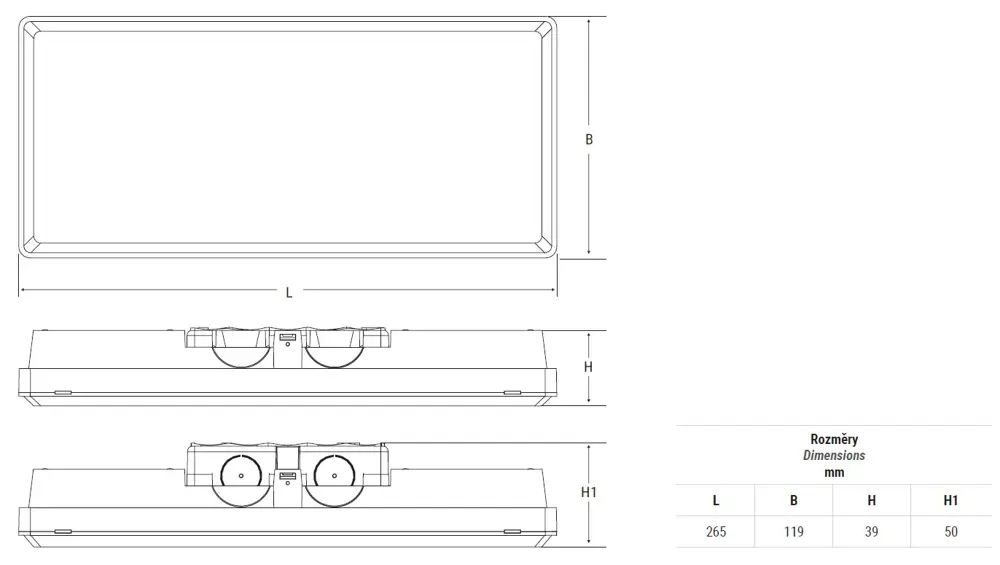 Available only in the CT version with central control. When the luminaire is not connected, it behaves as an AT luminaire (self-test). Luminaire with I65 protection class and IK07 impact protection class.