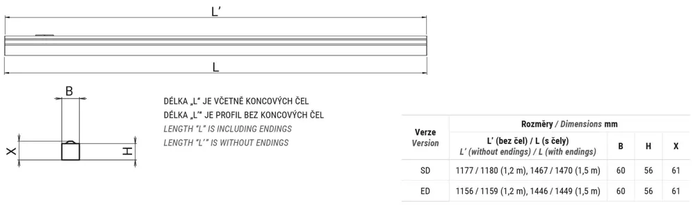 Ceiling and suspended LED luminaire – separate / coupling in lines (dimensional options 1,2 m and 1,5 m)