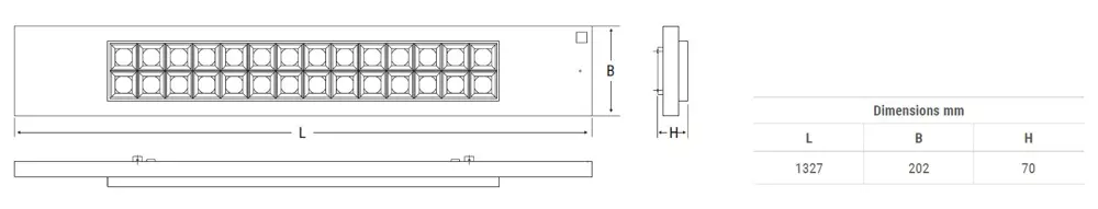 The exact emission of light on the work surface gives high characteristics of comfort and precision of the beam of light. A range of accessories is available for heavy wiring and for mechanical fixing in a continuous row to obtain a civil system of the latest generation. Additional accessories are also available for integrating emergency lighting: the LED Inverter for lighting up part of the fixture in the event of a black-out, or the LED Module for inserting in the seat provided.