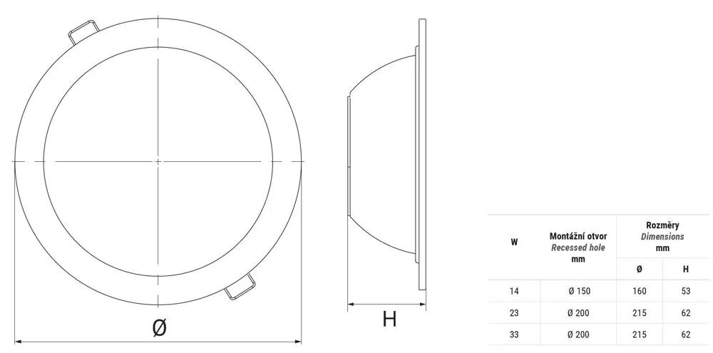 The diffusing and symmetric light emission is suitable for any space that requires lighting.