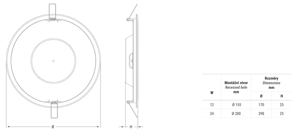Equipped with an integrated driver, the body is only 25 mm thick.