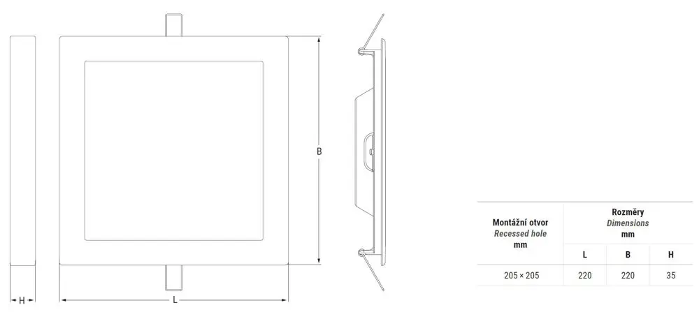 Compact recessed and surface-mounted luminaire with LED source, its opal diffuser ensures uniform light distribution and eliminates glare.