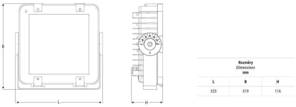 Outdoor floodlight with goniometric fixing bracket. Luminous flux up to over 17000 lm.