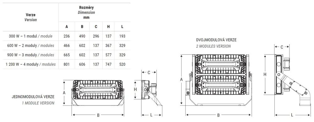 The Power Light floodlight allows you to illuminate large areas such as road sections, sports fields, industrial areas or car parks. Die-cast aluminium body with dissipating fins. Each module is equipped with a box to accommodate the driver and dissipate the operating temperature as best as possible. The product is supplied with standard