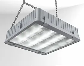 High luminous flux high bay light with a luminous flux of more than 40000 lm, equipped with an eye bolt for suspension.
