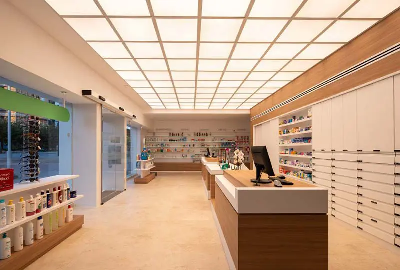 Beghelli was able to offer its products for this beautiful lighting project inside the Alquerías Pharmacy in Granada.