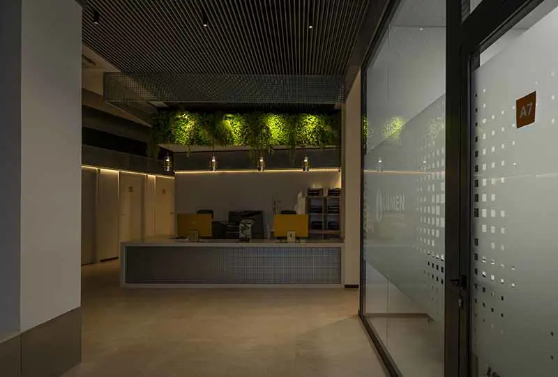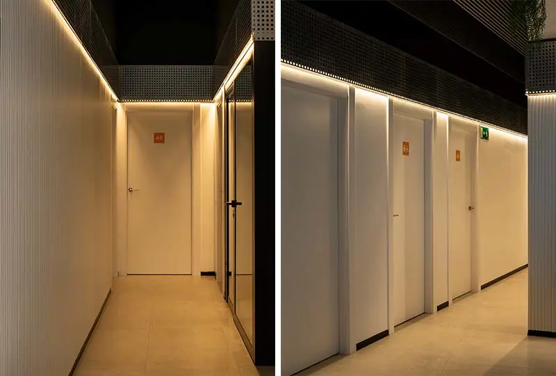 Beghelli LED strips serve as a guide for the different classrooms and offices.
