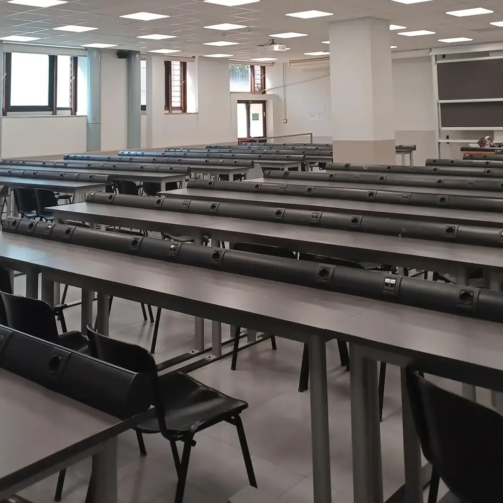 Among the immediate benefits of the project is greater visual comfort achieved thanks to the classroom lighting control system regulated by presence sensors and sensors that detect the contribution of natural light by modulating the power of the luminaires (DALI/KNX technology).
