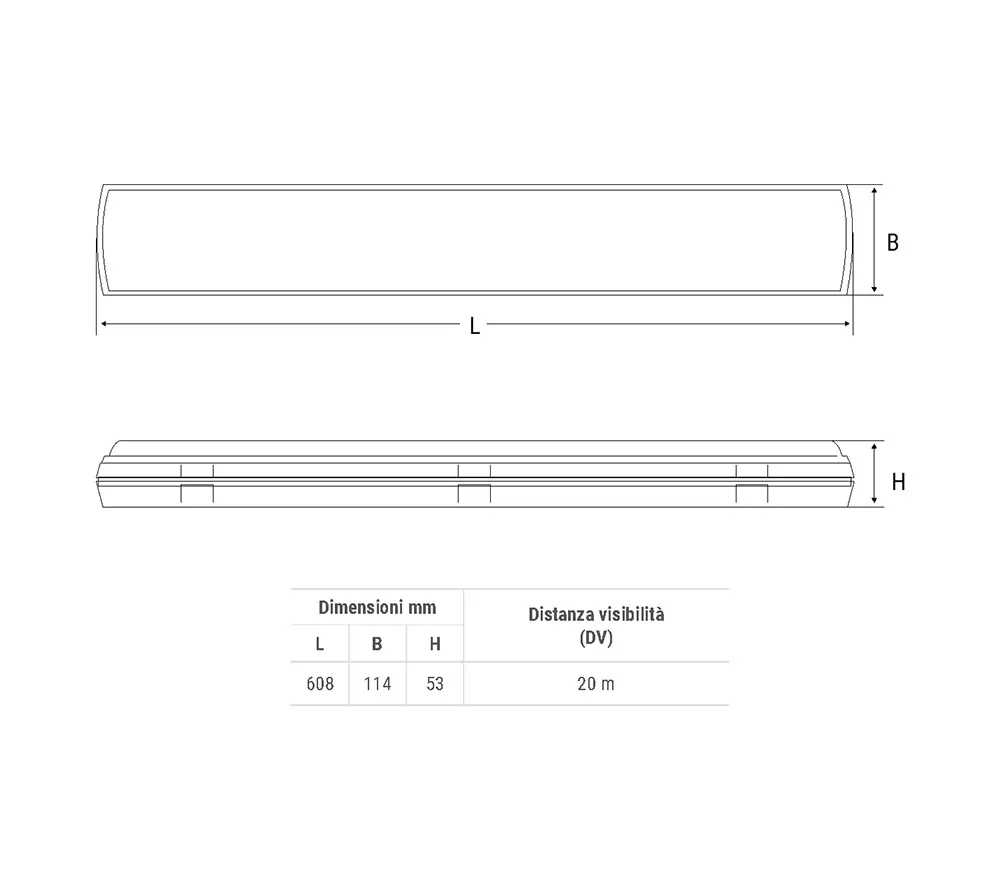 Available in both IP42 and IP65, by installing pictograms the visibility distance is 25m.