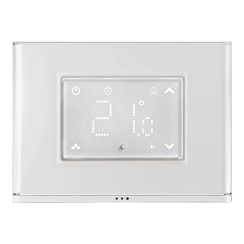 The chronothermostat, made of fine transparent material, can be backlit with white or colored light by choosing from the App among 16 million colors so as to create the best atmosphere for your home.