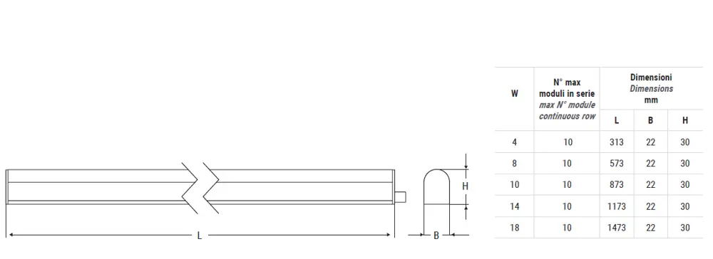 Használható bútorvilágítóként, de közvetett megvilágítás eléréséhez is alkalmazható, mind professzionális (bevásárlóközpontok, kirakatok), mind pedig háztartási használatra. A nagy hatásfokú LED-eknek köszönhetően alacsony a fogyasztása. Öt méretben kapható, a kábelezés lehetővé teszi a soros telepítést, ezzel a kibocsátott fény folytonossága érhető el, elkerülve a sávok közötti árnyékokat. A lámpatest színhőmérsékletét a rajta található kapcsolóval lehet beállítani, annak fel és lekapcsolásával. Ha a fel- és lekapcsolási idő több mint 5 másodpercre történik meg, akkor az adott színhőmérséklet marad kiválasztva.