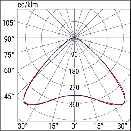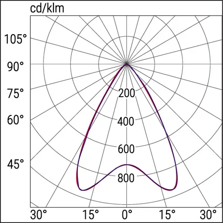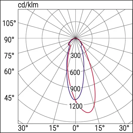1. pozíció: Széles szimetrikus sugárzási szög ( UGR < 25)