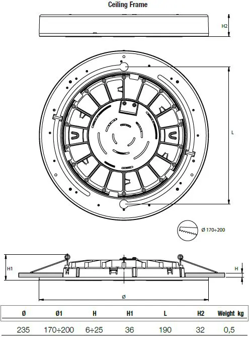 Rögzítés: Álmennyezetbe süllyesztve, felületre szerelve
