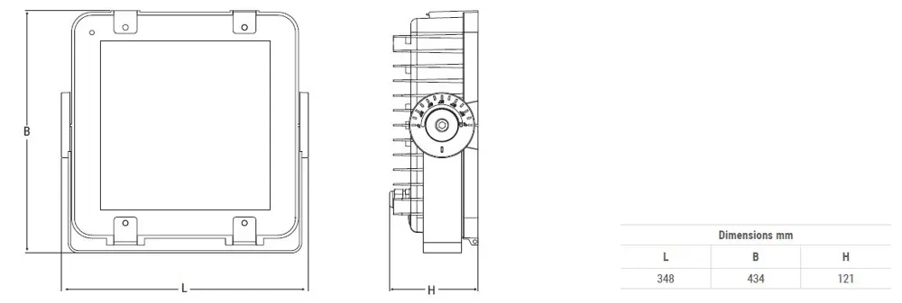 Használható akár fényvetőként, akár csarnokvilágító lámpatestként. A termék szimmetrikus és aszimmetrikus fényeloszással elérhető. A két fényeloszlás közül egy elválasztó modullal választhatjuk ki a világítási feladathoz legideálisabbat.