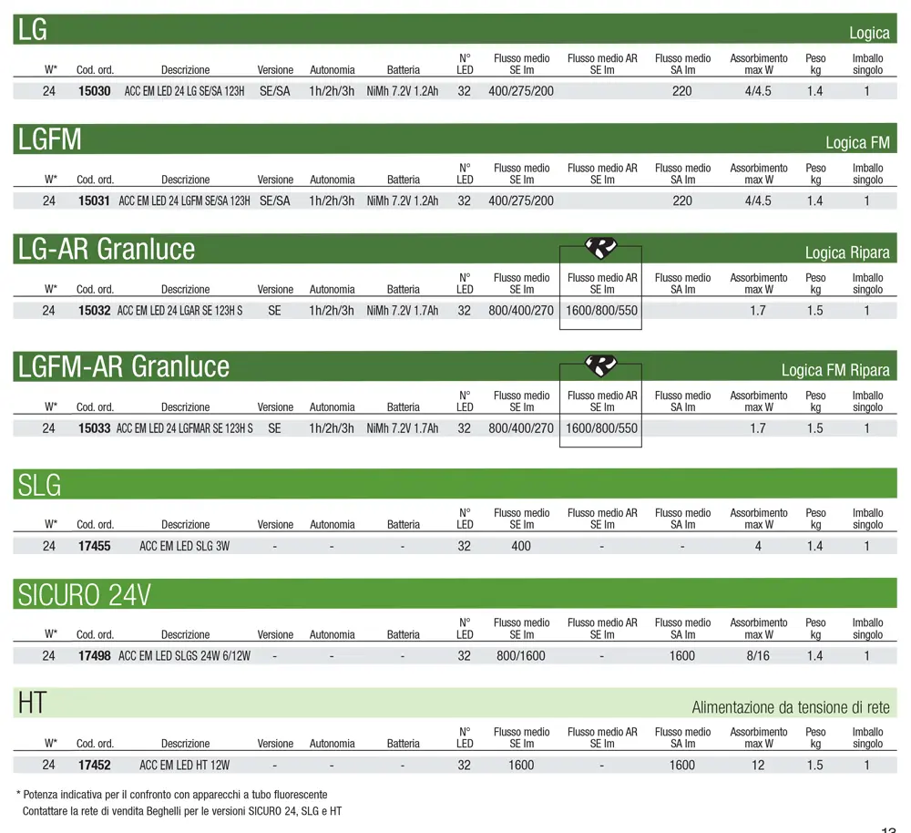 EN 60598-1, EN 60598-2-2, EN 60598-2-22, EN 1838, UNI 11222, ATEX 2014/34/UE