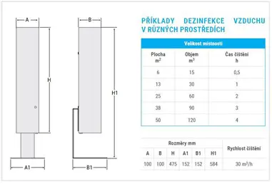 UV-C cella mérete lehetővé teszi kis és közepes nagyságú (50nm-ig) helyiségek
