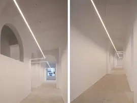 ll progetto utilizza la linea come risorsa luminosa che attraversa e ridisegna i diversi ambienti. Una luce guida sospesa che si adatta alle geometrie degli spazi interni. Linee di luce che non solo evidenziano l'architettura stessa, ma guidano anche il visitatore in modo intuitivo ed elegante.