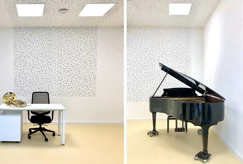Nelle aule di musica sono stati installati apparecchi Beghelli Panel Led 36W, che forniscono una luce uniforme e non abbagliante, migliorando così la concentrazione degli studenti e il loro rendimento scolastico. Per le aule di teoria è stato scelto uno schema di illuminazione omogeneo con downlight da incasso, che contribuisce a creare un ambiente di apprendimento confortevole ed efficiente.
