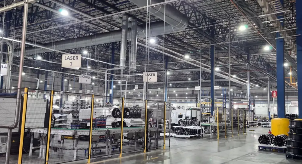 Installazione dell'illuminazione nell'area destinata alla produzione di cerchi in lega leggera per autovetture e veicoli commerciali.
